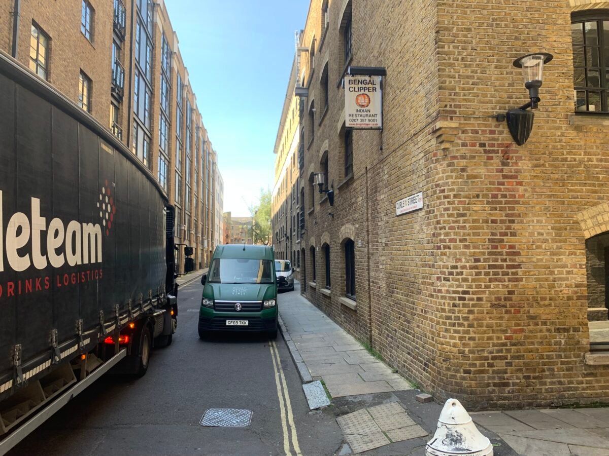 If you then walk along the pavement heading east, and turn around to face Tower Bridge, you can see where Tegan is fleeing from the dodgy policemen. While it isn’t noticeable in the television episode because you can get away with saying that the locations are all different areas, in reality, Tegan would have had to run past the TARDIS as she exited the Shad Thames. So why didn’t she just go inside the TARDIS? It’s only when you visit these locations that you start to ponder these questions.